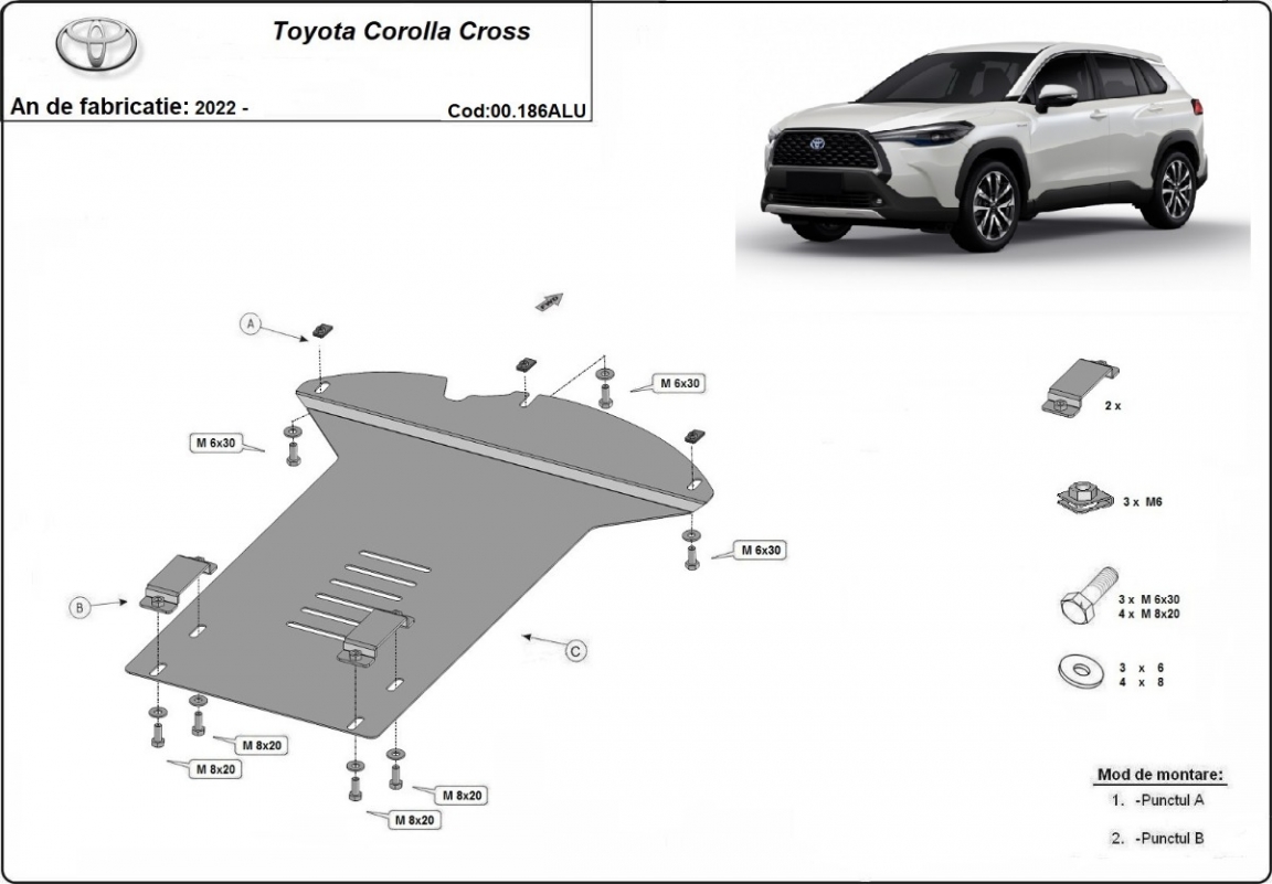 Protetores de cárter em Alumínio para a proteção do Conversor catalítico The skid plate is new and fits perfectly for all versions of Toyota Corolla Cross manufactured between 2022 and 2026. Os nossos protetores de cárter são feitos com chapas de aço com 3 mm de espessura com pintura eletrostática. Os escudos são de alumínio, mas os suportes de fixação são de aço. Entregue com todos os acessórios necessários (parafusos, porcas, grampos). Todas os protetores de cárter possuem um revestimento em pó para impedir a corrosão. |