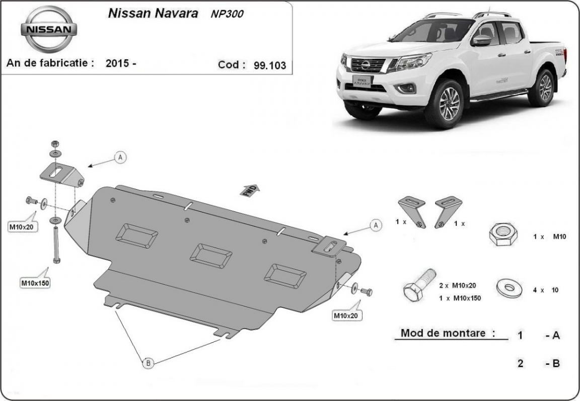 Protetores de cárter em Aço para a proteção do radiador The skid plate is new and fits perfectly for all versions of Nissan Navara NP300 manufactured between 2015 and 2021. Os nossos protetores de cárter são feitos com chapas de aço com 2 mm de espessura com pintura eletrostática. Entregue com todos os acessórios necessários (parafusos, porcas, grampos). Todas os protetores de cárter possuem um revestimento em pó para impedir a corrosão. |