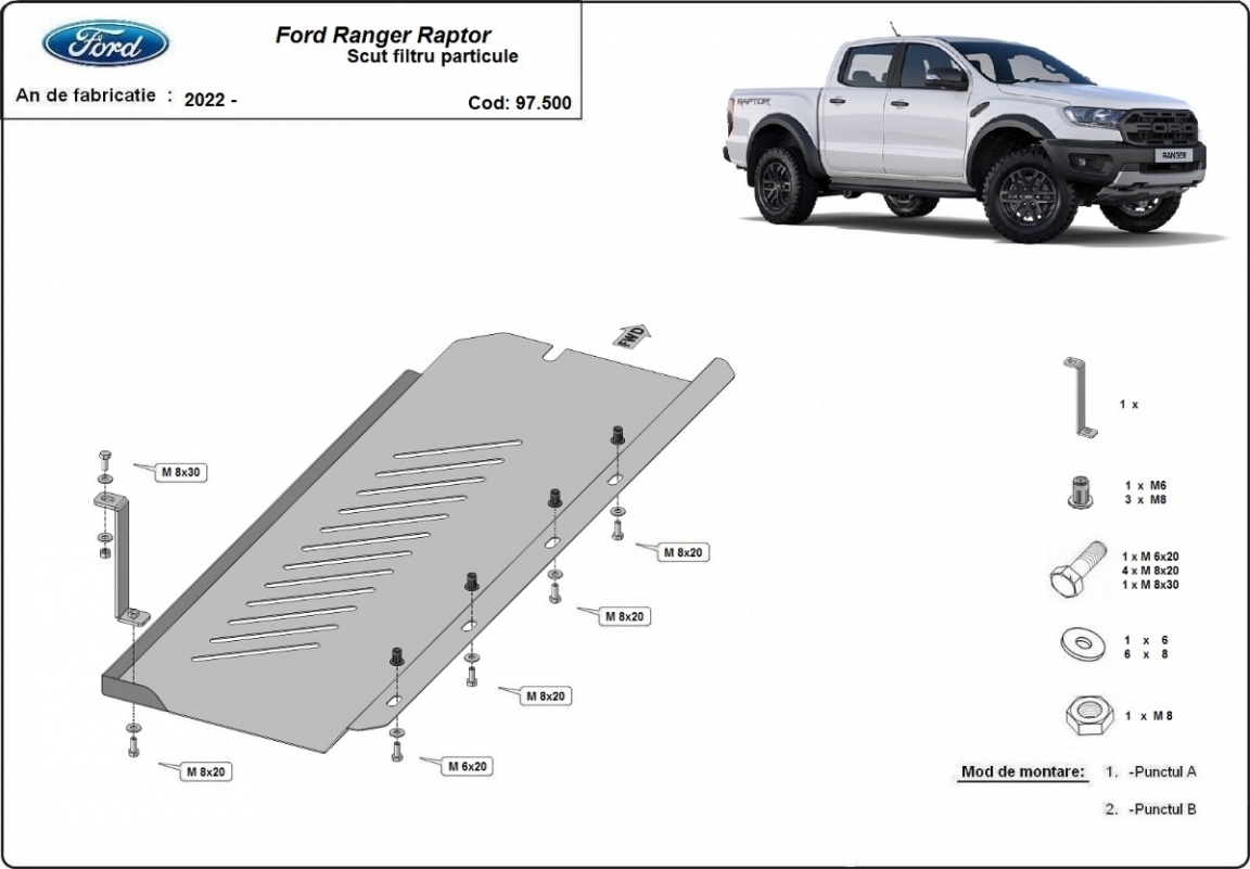 Protetor de aço para DPF Ford Ranger Raptor (2020-2023)