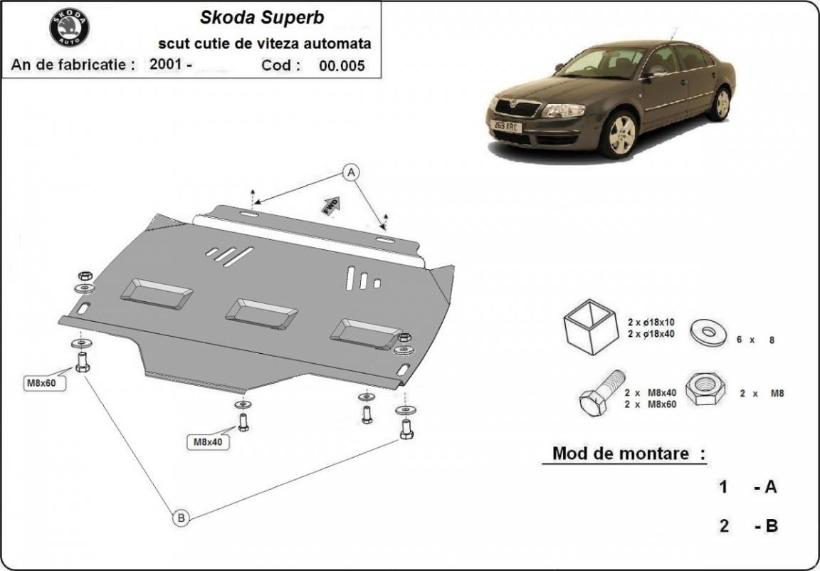 Protetor de caixa de velocidades automática de aço Skoda Superb (2001-2008)