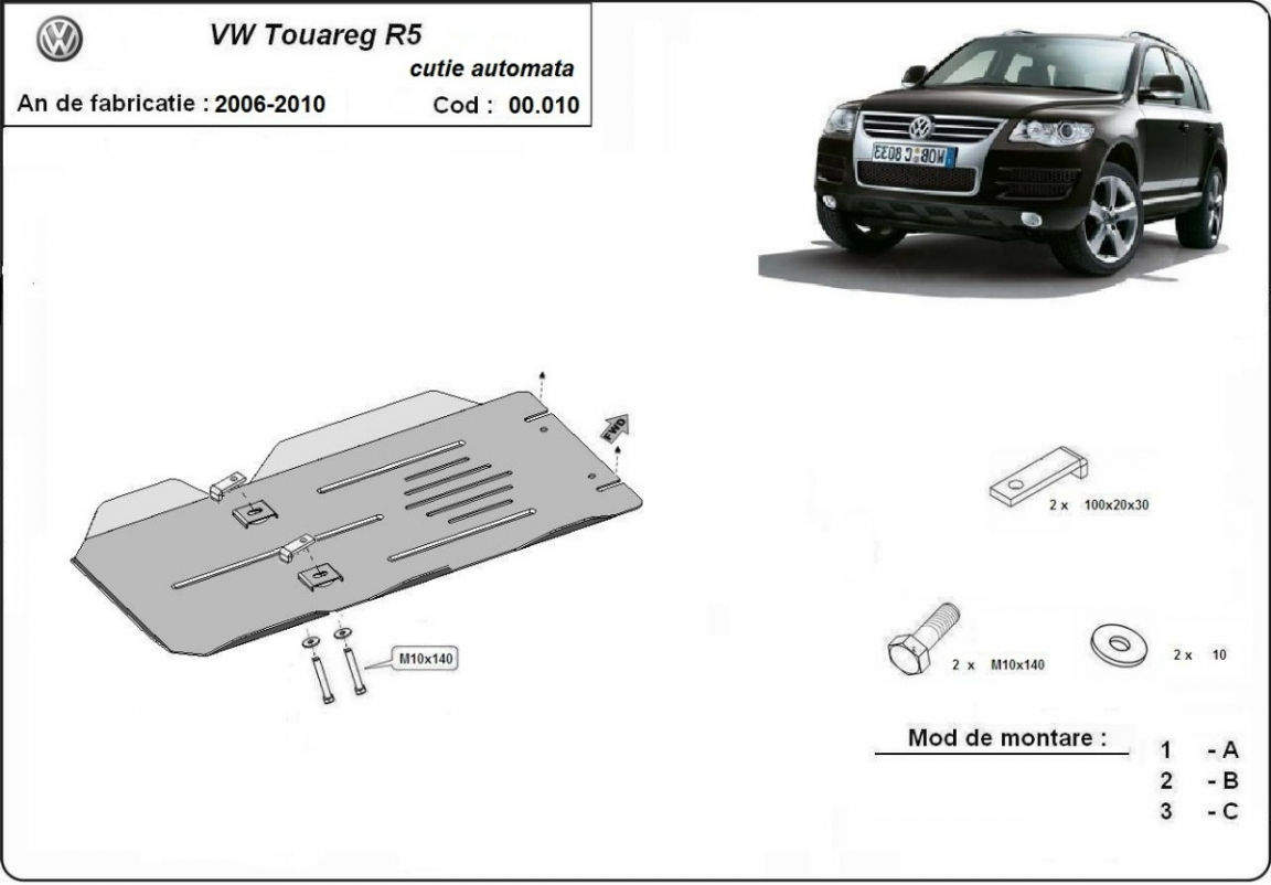 Protetor de caixa de velocidades automática de aço Volkswagen Touareg 7L (2003-2010)
