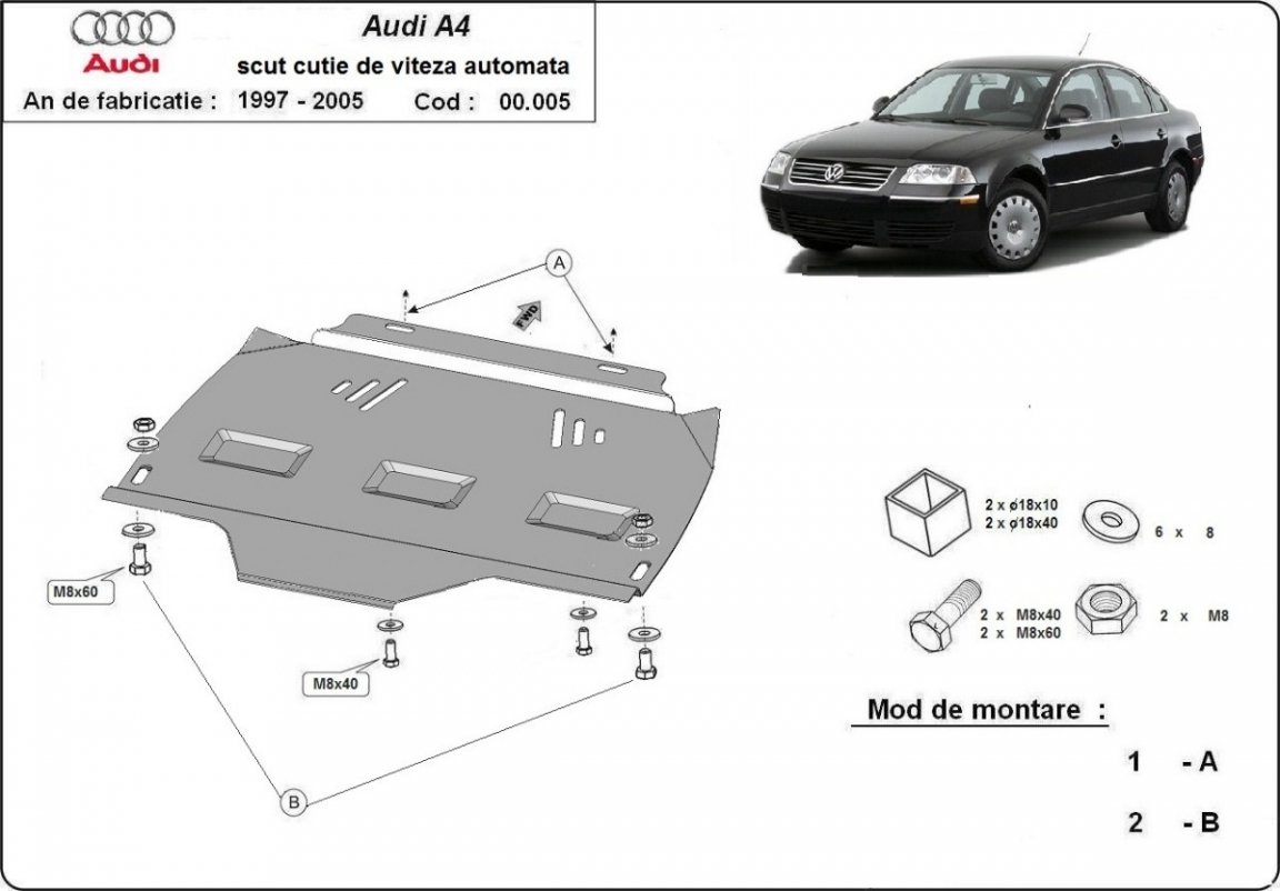 The skid plate is new and fits perfectly for all versions of VW Passat B5, B5.5 manufactured between 1997 and 2005.