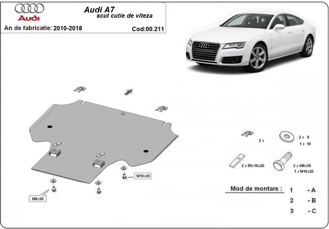 Protetor de caixa de velocidades de aço Audi A7 (2011-2018)
