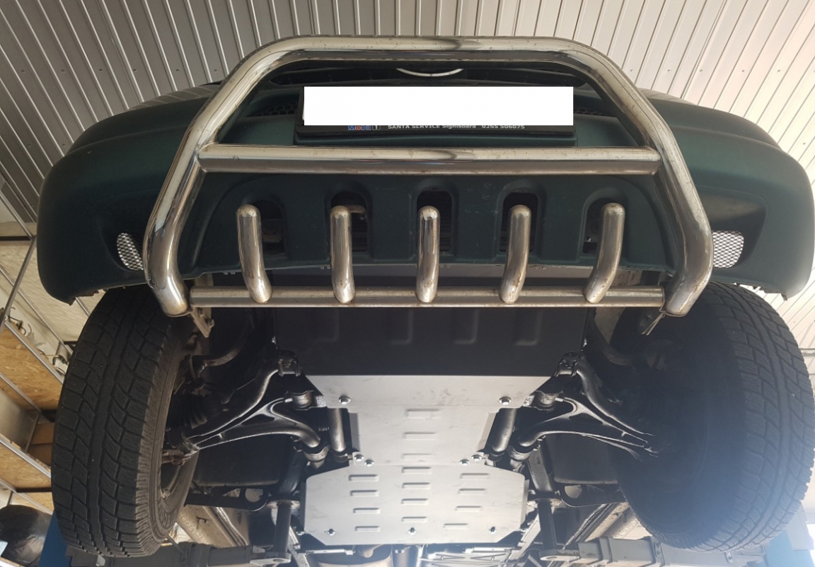 Protetores de cárter em Aço para a proteção do caixa de velocidades The skid plate is new and fits perfectly for all versions of Mercedes ML W163 manufactured between 1998 and 2005. Os nossos protetores de cárter são feitos com chapas de aço com 3 mm de espessura com pintura eletrostática. Entregue com todos os acessórios necessários (parafusos, porcas, grampos). Todas os protetores de cárter possuem um revestimento em pó para impedir a corrosão. |