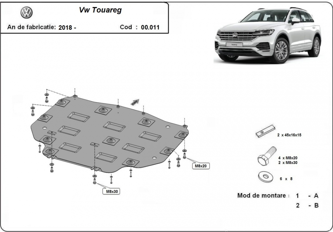 Protetores de cárter em Aço para a proteção do caixa de velocidades The skid plate is new and fits perfectly for all versions of VW Touareg manufactured between 2018 and 2026. Os nossos protetores de cárter são feitos com chapas de aço com 2 mm de espessura com pintura eletrostática. Entregue com todos os acessórios necessários (parafusos, porcas, grampos). Todas os protetores de cárter possuem um revestimento em pó para impedir a corrosão. |