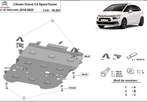 Protetor de Carter de aço Citroen Grand C4 SpaceTourer (2018-2020)