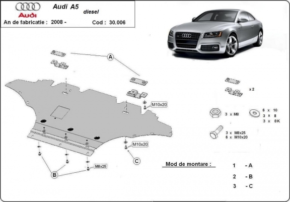 Protetor de Carter de aço Audi A5, diesel (2008-2016)