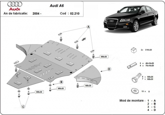 Protetor de Carter de aço Audi A6 com abas laterais