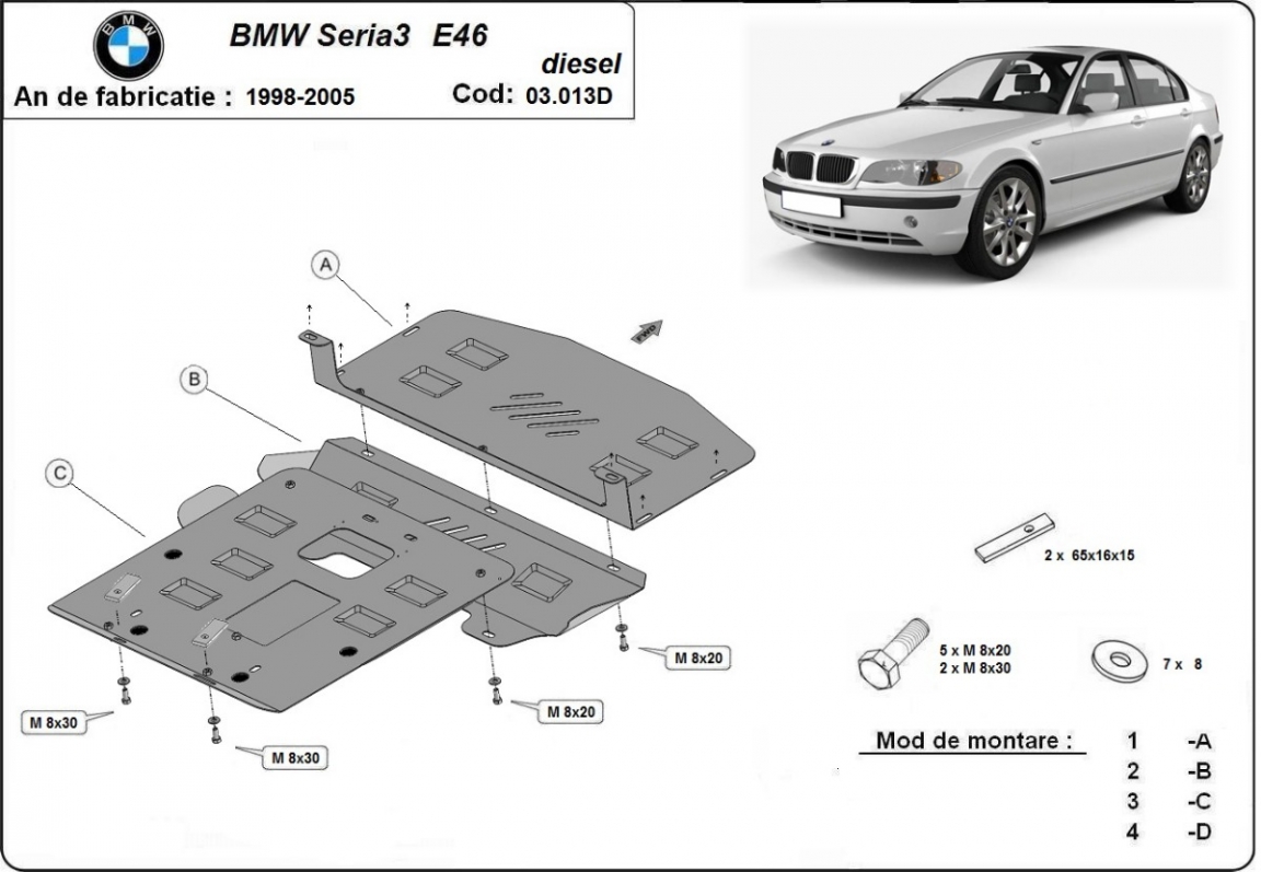 Protetor de Carter de aço BMW Seria 3 E46 - Diesel (1998-2005)