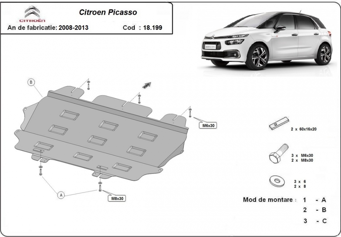 Protetor de Carter de aço Citroen C4 Picasso (2008-2013)