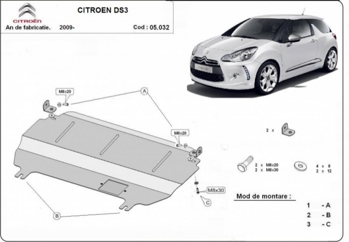 Protetor de Carter de aço Citroen DS3 (2009-2026)