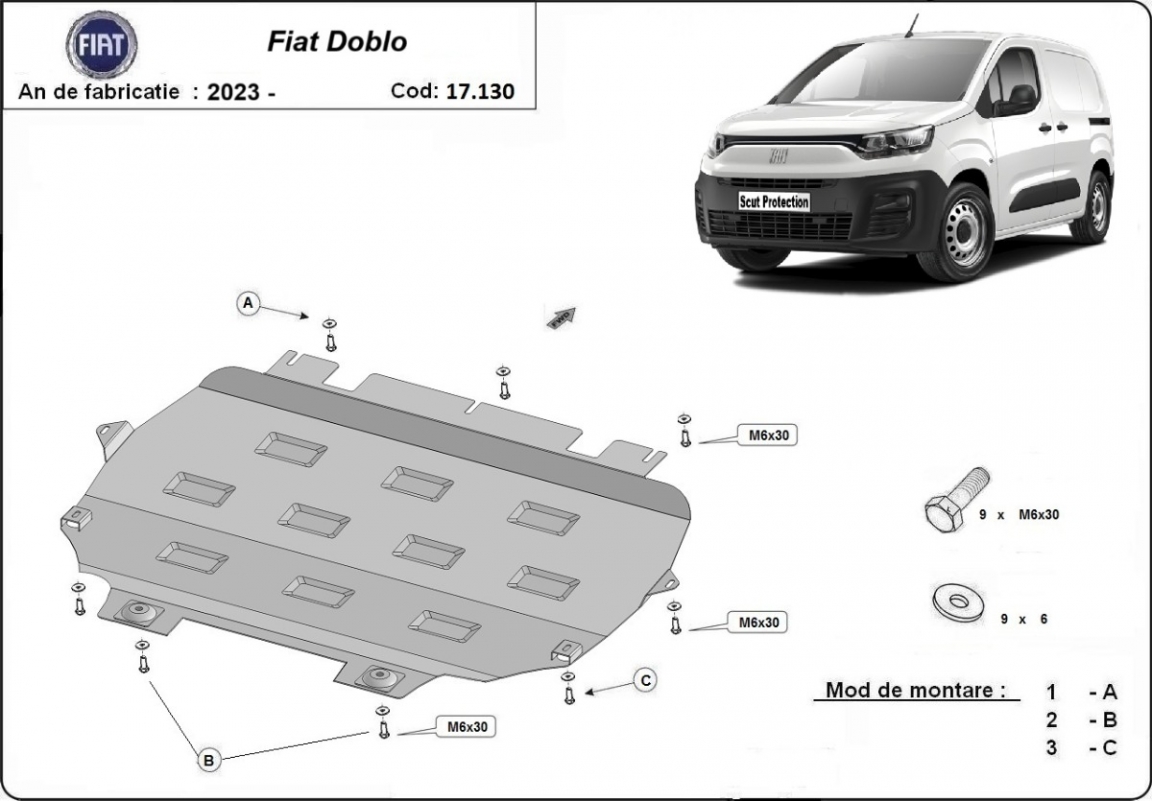 Protetores de cárter em Aço para a proteção do motor, caixa de velocidades, radiador The skid plate is new and fits perfectly for all versions of Fiat Doblo manufactured between 2023 and 2026. Os nossos protetores de cárter são feitos com chapas de aço com 2 mm de espessura com pintura eletrostática. Entregue com todos os acessórios necessários (parafusos, porcas, grampos). Todas os protetores de cárter possuem um revestimento em pó para impedir a corrosão. |