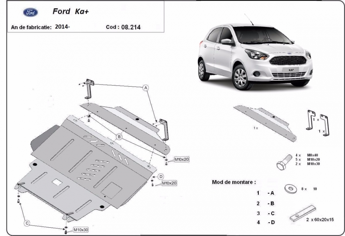 Protetor de Carter de aço Ford KA+ (2014-2020)
