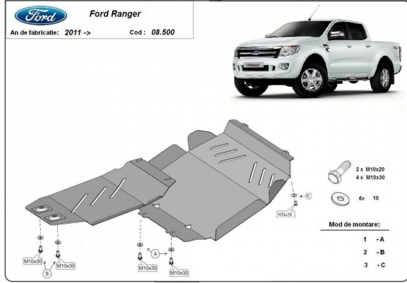 Protetor de Carter de aço Ford Ranger (2010-2023)