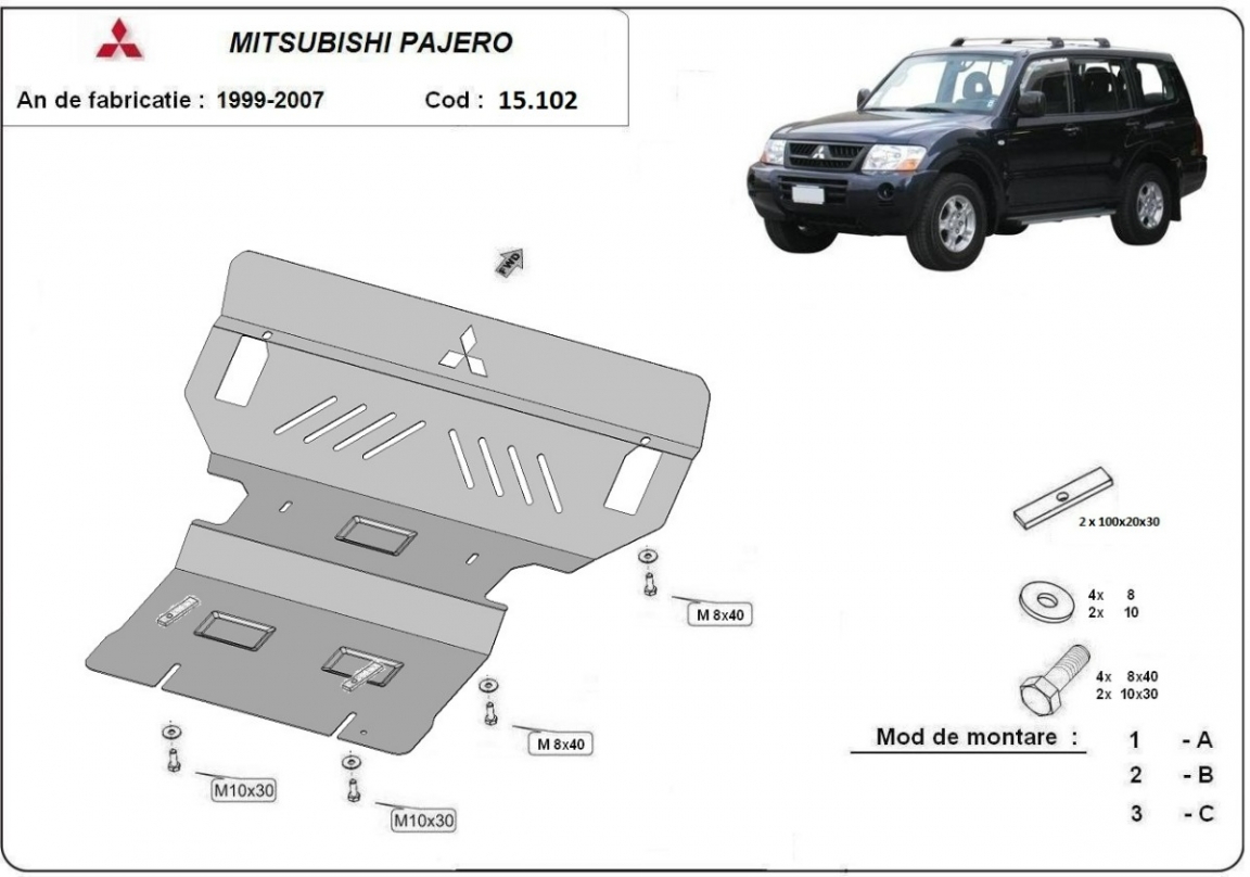Protetores de cárter em Aço para a proteção do motor, radiador The skid plate is new and fits perfectly for the Mitsubishi Pajero 3 (V60, V70), with the following engine/drive versions: 3.5 Gdi; 2.5 Tdi; 3.2 Di-d - manufactured between 1999 and 2007. Os nossos protetores de cárter são feitos com chapas de aço com 2,5 mm de espessura com pintura eletrostática. Entregue com todos os acessórios necessários (parafusos, porcas, grampos). Todas os protetores de cárter possuem um revestimento em pó para impedir a corrosão. |