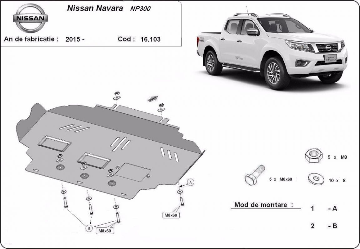 Protetores de cárter em Aço para a proteção do motor The skid plate is new and fits perfectly for all versions of Nissan Navara NP300 manufactured between 2015 and 2021. Possui uma abertura para o cárter do óleo, portanto, a respetiva remoção não será necessária para mudar o óleo. Os nossos protetores de cárter são feitos com chapas de aço com 2.5 mm de espessura com pintura eletrostática. Entregue com todos os acessórios necessários (parafusos, porcas, grampos). Todas os protetores de cárter possuem um revestimento em pó para impedir a corrosão. |