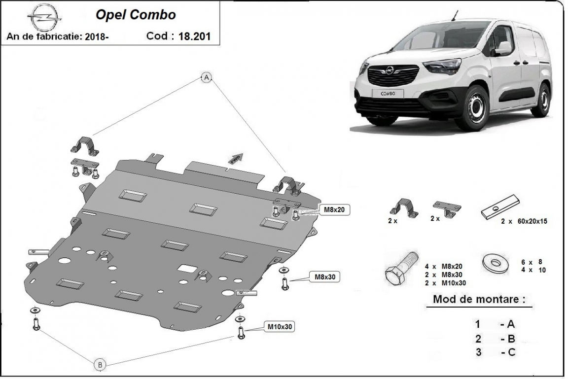 Protetor de Carter de aço Opel Combo C (2018-2026)