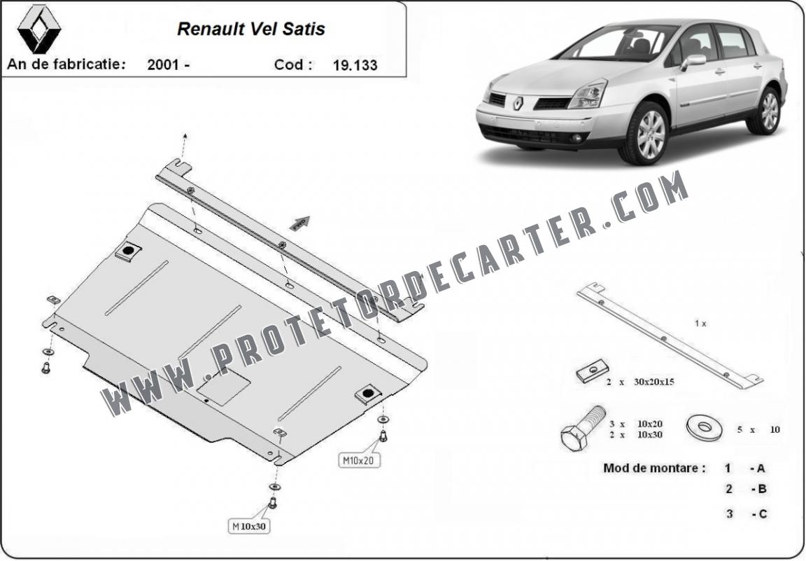 Protetor de Carter de aço Renault Vels Satis (2001-2009)