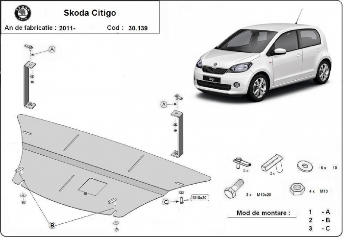 Protetor de Carter de aço Skoda Citigo (2011-2020)