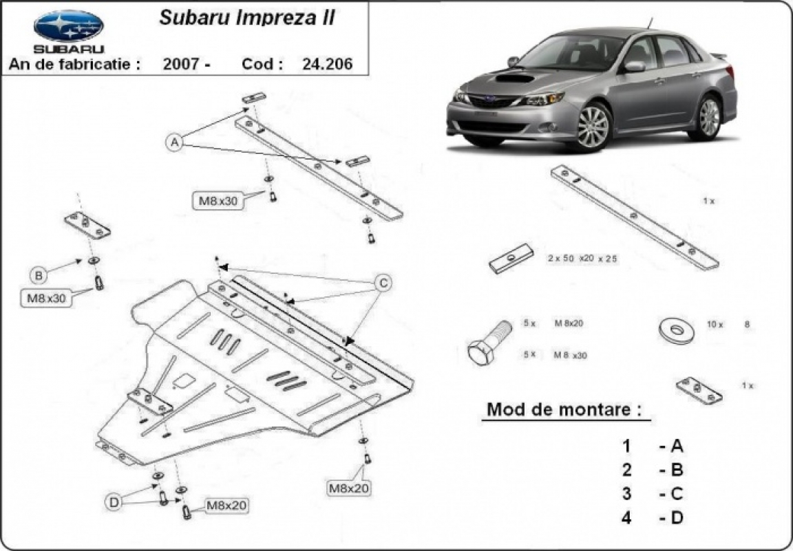 Protetor de Carter de aço Subaru Impreza petrol (2007-2016)