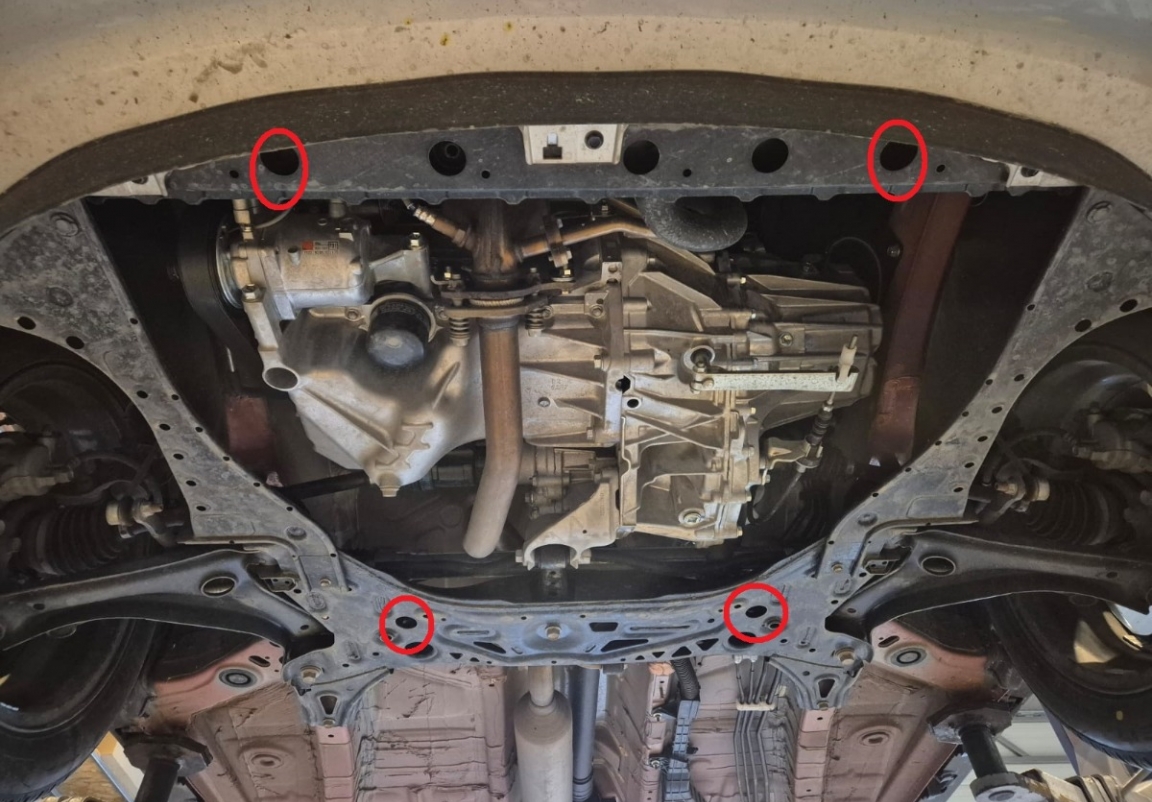 | Todos os automóveis possuem orifícios feitos de fábrica para encaixe do protetor de cárter, facilitando a montagem. |