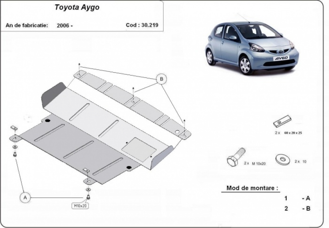 Protetor de Carter de aço Toyota Aygo AB10 (2005-2014)