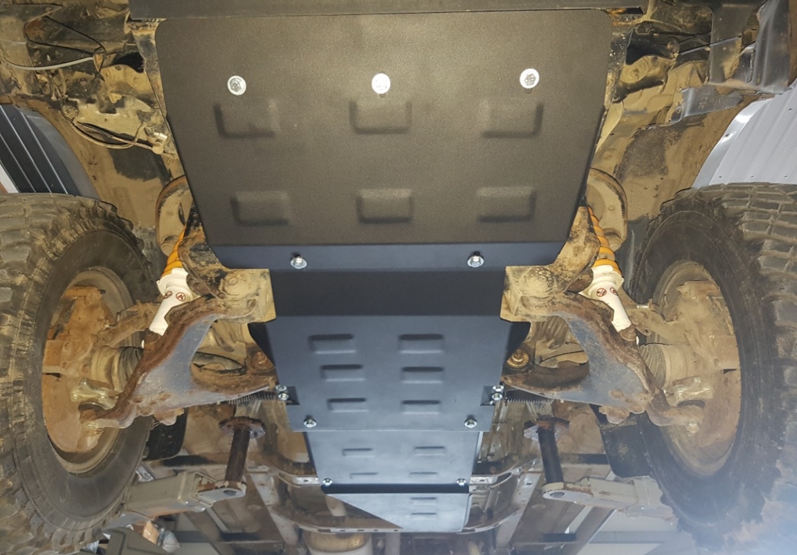 Protetores de cárter em Aço para a proteção do motor, radiador, pára-choques dianteiro The skid plate is new and fits perfectly for all versions of Toyota Land Cruiser J90 manufactured between 1995 and 2002. Os nossos protetores de cárter são feitos com chapas de aço com 2.5 mm de espessura com pintura eletrostática. Entregue com todos os acessórios necessários (parafusos, porcas, grampos). Todas os protetores de cárter possuem um revestimento em pó para impedir a corrosão. |