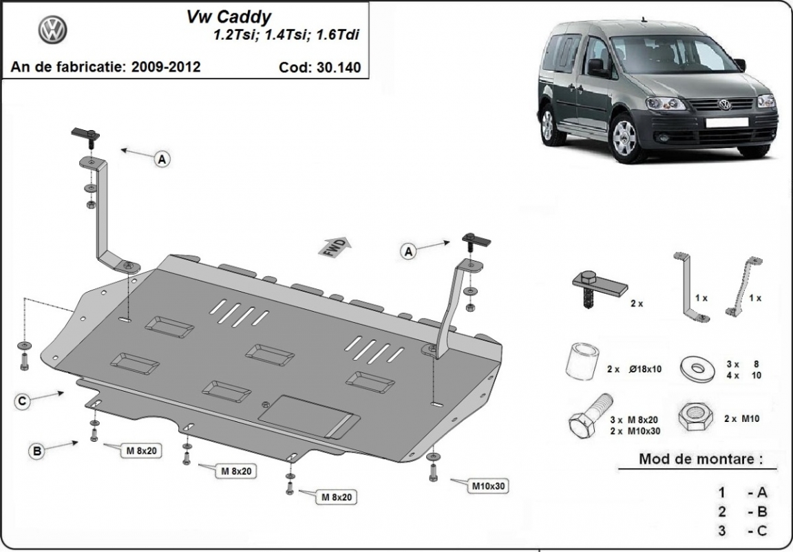 Protetor de Carter de aço Volkswagen Caddy (2010-2012)