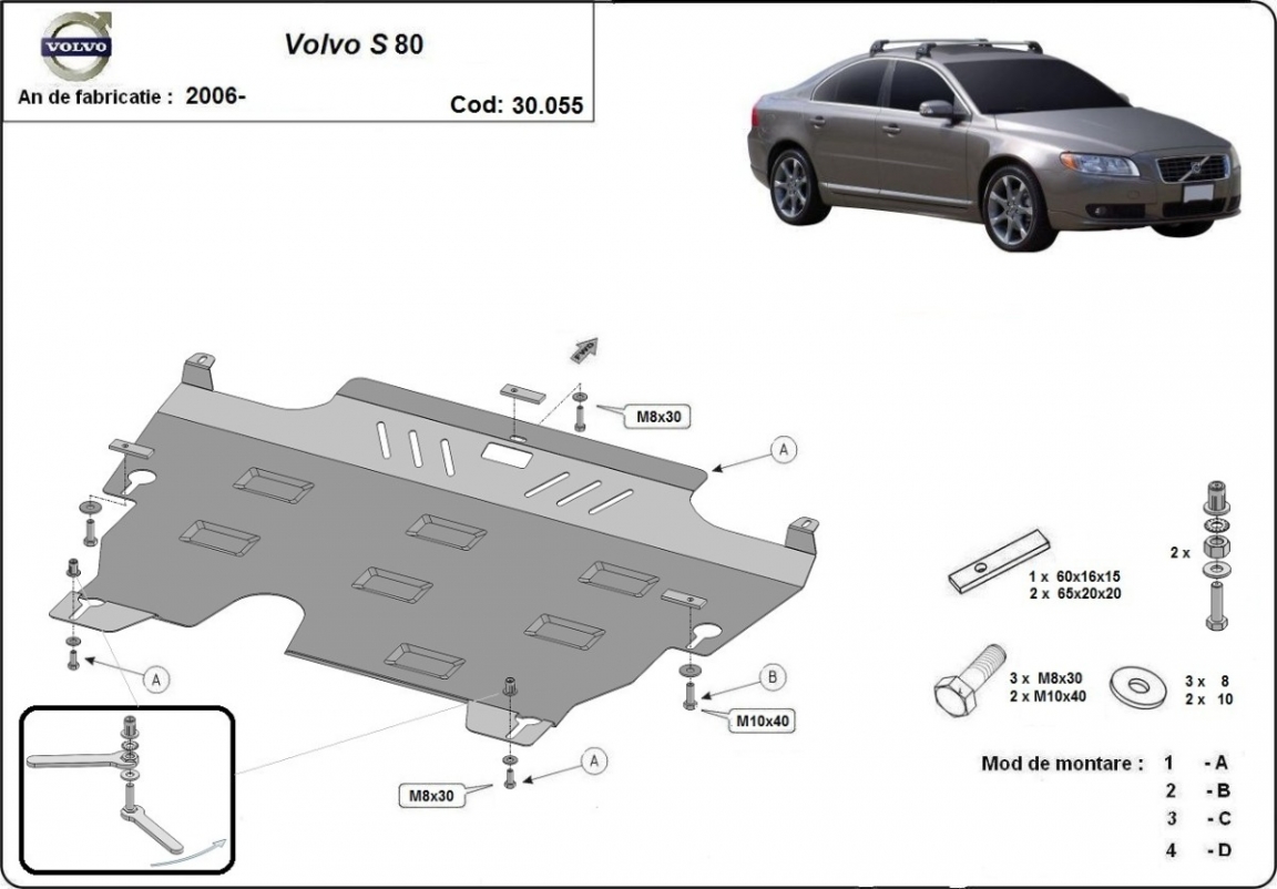 Protetores de cárter em Aço para a proteção do motor, caixa de velocidades The skid plate is new and fits perfectly for all versions of Volvo S80 manufactured between 2006 and 2016. Os nossos protetores de cárter são feitos com chapas de aço com 2 mm de espessura com pintura eletrostática. Entregue com todos os acessórios necessários (parafusos, porcas, grampos). Todas os protetores de cárter possuem um revestimento em pó para impedir a corrosão. |