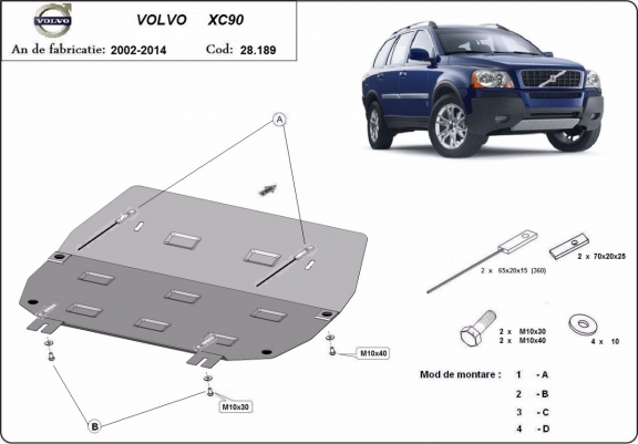 Protetores de cárter em Aço para a proteção do motor, caixa de velocidades, radiador The skid plate is new and fits perfectly for all versions of Volvo XC90 manufactured between 2002 and 2014. Os nossos protetores de cárter são feitos com chapas de aço com 2 mm de espessura com pintura eletrostática. Entregue com todos os acessórios necessários (parafusos, porcas, grampos). Todas os protetores de cárter possuem um revestimento em pó para impedir a corrosão. |