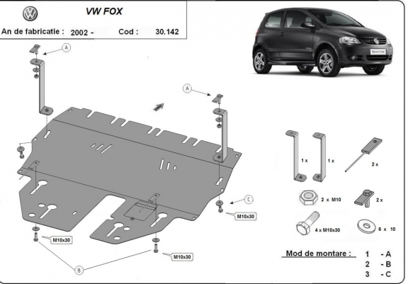 Protetores de cárter em Aço para a proteção do motor, caixa de velocidades, radiador, pára-choques dianteiro The skid plate is new and fits perfectly for all versions of VW Fox manufactured between 2002 and 2017. Possui uma abertura para o cárter do óleo, portanto, a respetiva remoção não será necessária para mudar o óleo. Os nossos protetores de cárter são feitos com chapas de aço com 2 mm de espessura com pintura eletrostática. Entregue com todos os acessórios necessários (parafusos, porcas, grampos). Todas os protetores de cárter possuem um revestimento em pó para impedir a corrosão. |
