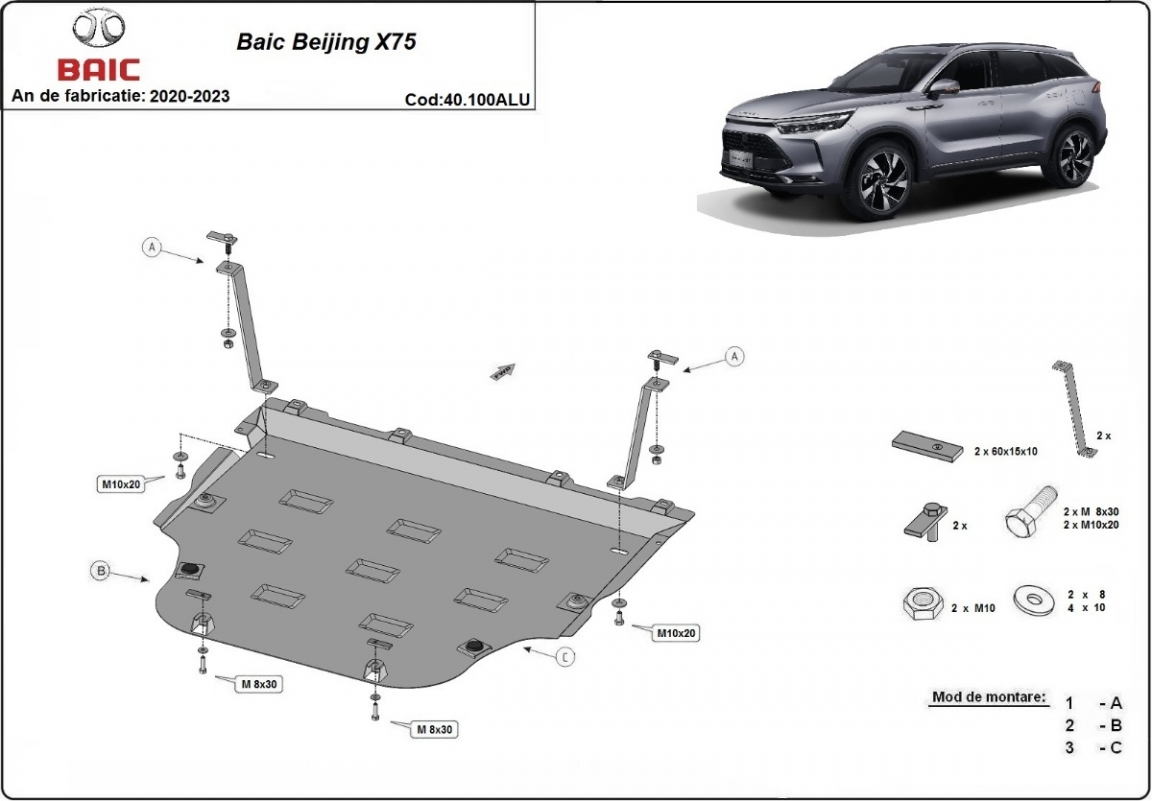 Protetor de Carter de alumínio BAIC Beijing X75 (2020-2023)