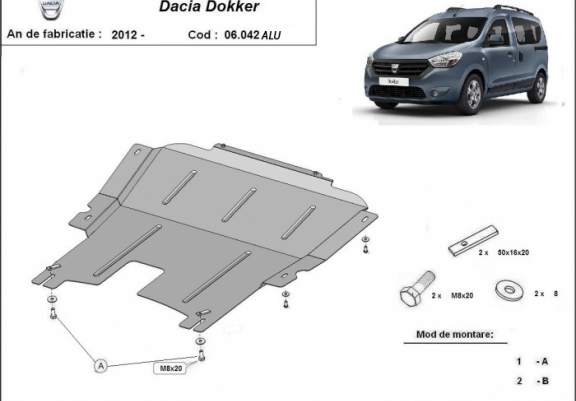 Protetor de Carter de alumínio Dacia Dokker (2012-2026)