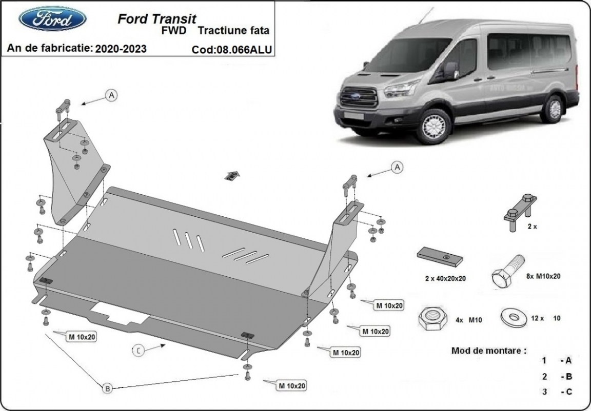 Protetor de Carter de alumínio Ford Transit FWD (2020-2026)
