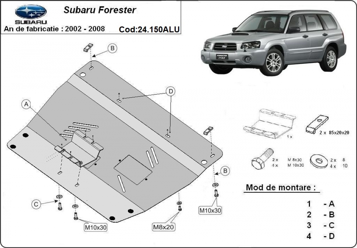 Protetor de Carter de alumínio Subaru Forester 2 (2002-2008)