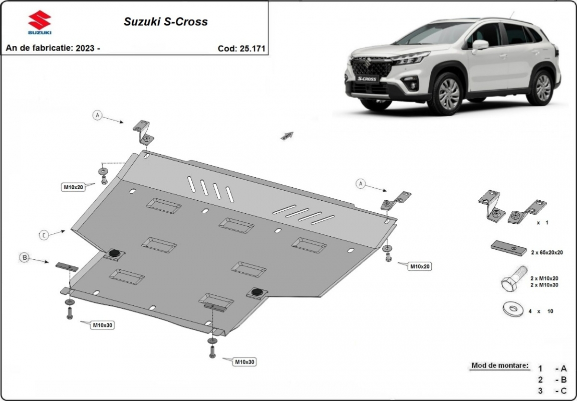 Protetores de cárter em Alumínio para a proteção do motor, caixa de velocidades The skid plate is new and fits perfectly for the Suzuki S-Cross, with the following engine/drive versions: Hybrid - manufactured between 2023 and 2026. Os nossos protetores de cárter são feitos com chapas de aço com 4 mm de espessura com pintura eletrostática. Os escudos são de alumínio, mas os suportes de fixação são de aço. Entregue com todos os acessórios necessários (parafusos, porcas, grampos). Todas os protetores de cárter possuem um revestimento em pó para impedir a corrosão. |