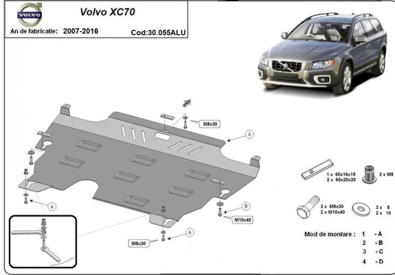 The skid plate is new and fits perfectly for all versions of Volvo XC70 manufactured between 2007 and 2016.