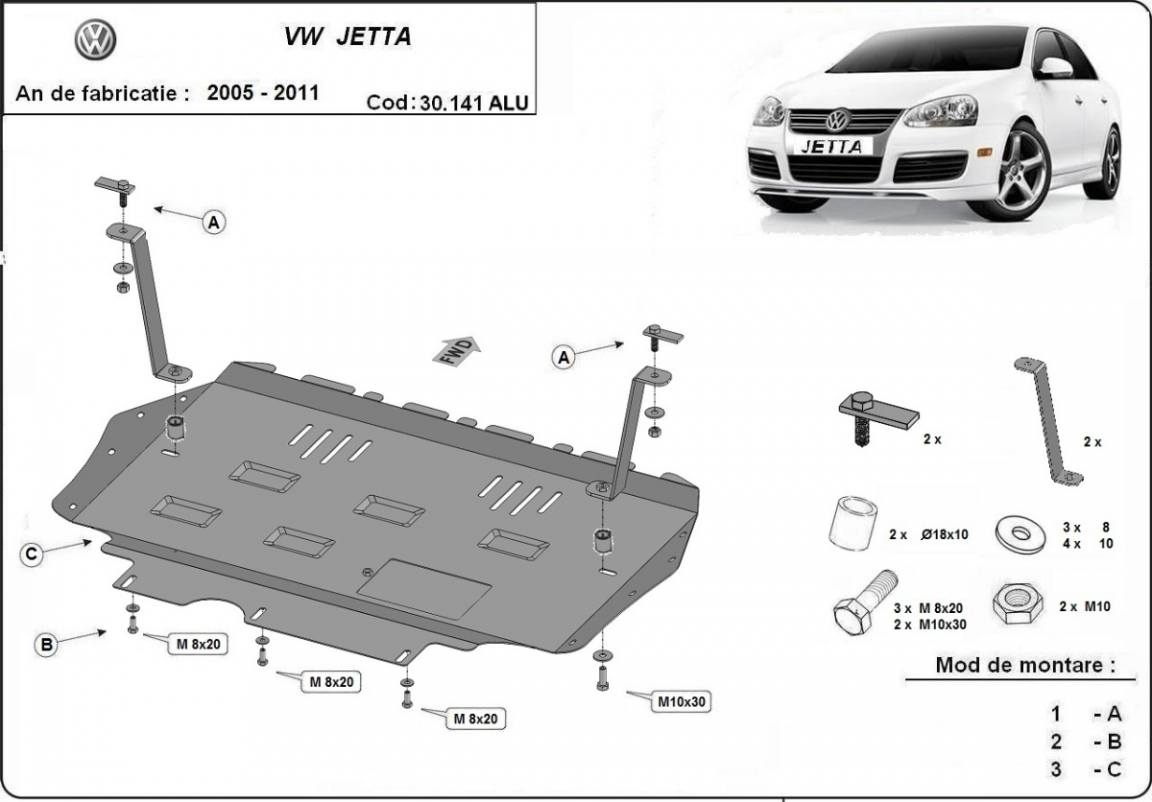 Protetores de cárter em Alumínio para a proteção do motor, caixa de velocidades, radiador The skid plate is new and fits perfectly for all versions of VW Jetta manufactured between 2005 and 2011. Os nossos protetores de cárter são feitos com chapas de aço com 3 mm de espessura com pintura eletrostática. Os escudos são de alumínio, mas os suportes de fixação são de aço. Entregue com todos os acessórios necessários (parafusos, porcas, grampos). Todas os protetores de cárter possuem um revestimento em pó para impedir a corrosão. |