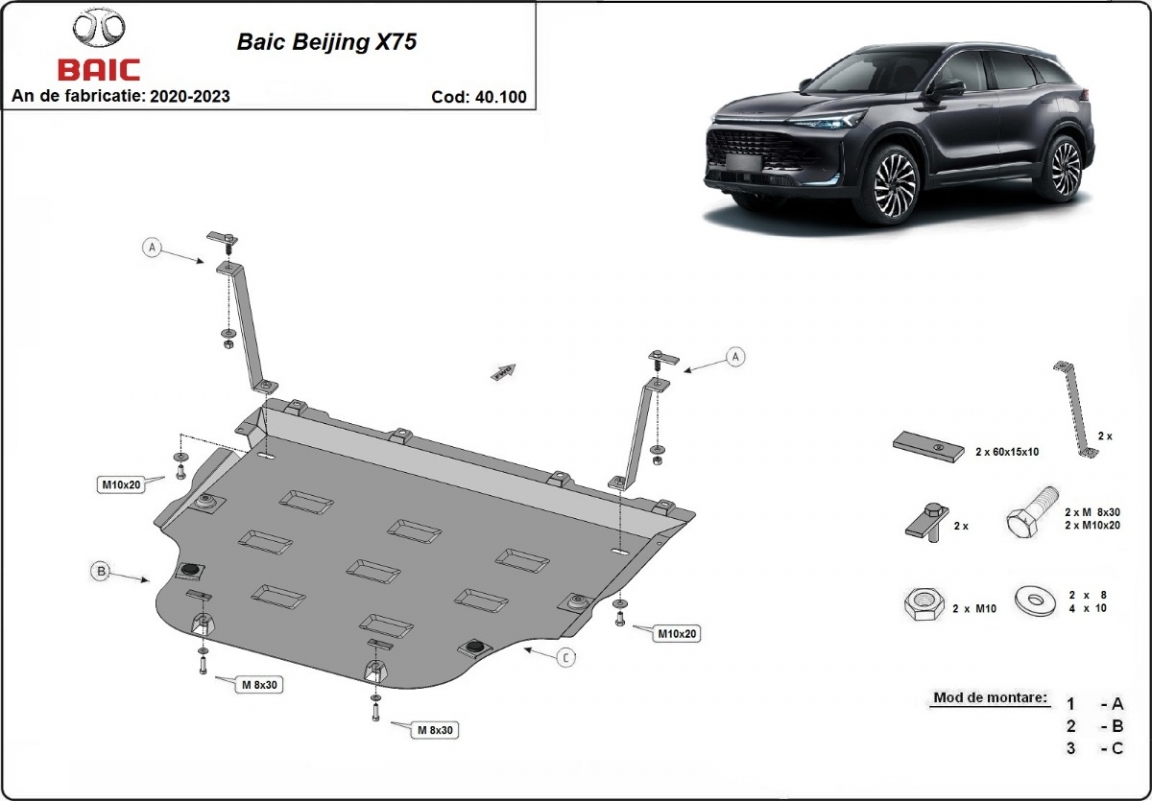 Protetor de Carter de aço Baic Beijing X75 (2020-2023)