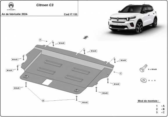 Protetor de Carter de aço Citroen C3 (2024-2026)