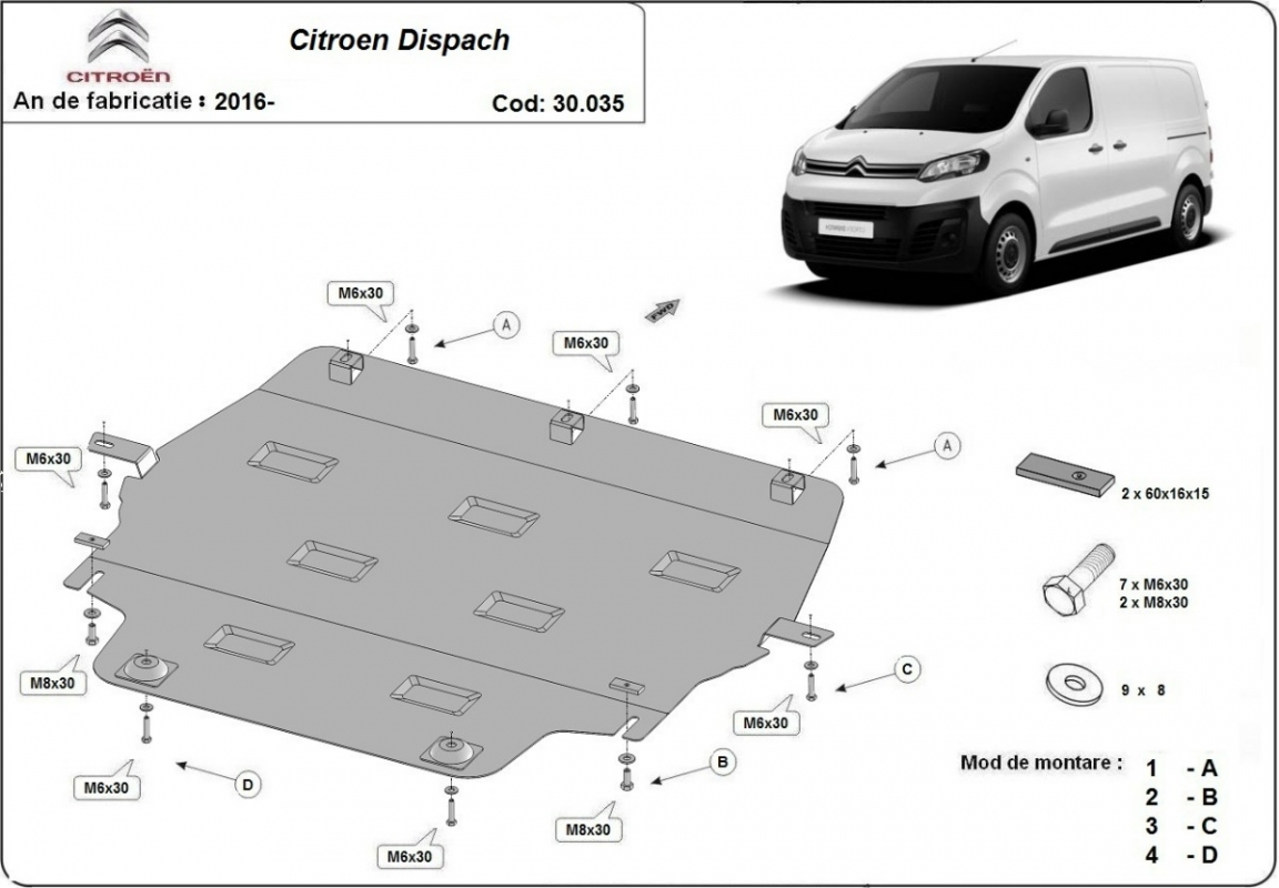 Protetor de Carter de aço Citroen Dispatch (2016-2026)