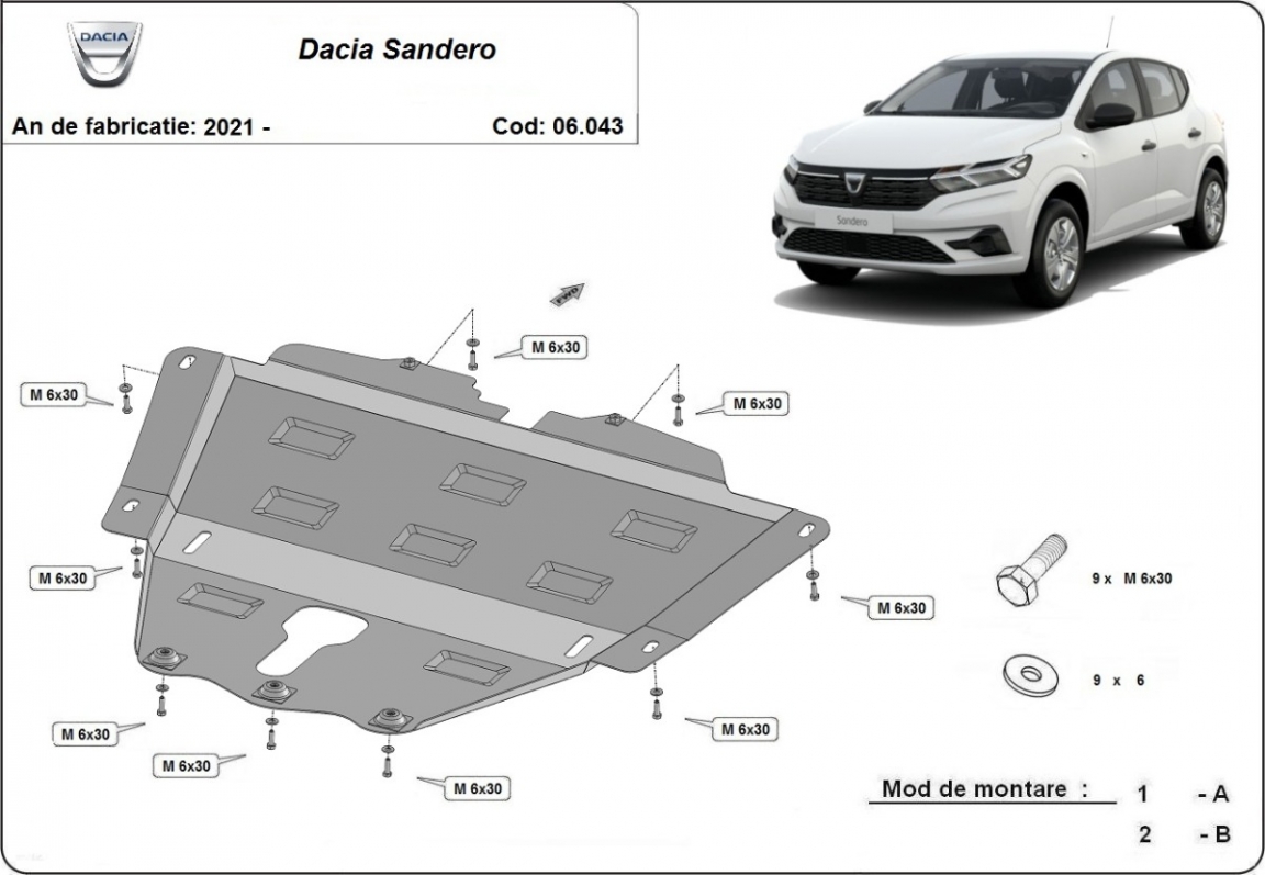 Protetores de cárter em Aço para a proteção do motor, caixa de velocidades The skid plate is new and fits perfectly for all versions of Dacia Sandero manufactured between 2021 and 2026. Os nossos protetores de cárter são feitos com chapas de aço com 2 mm de espessura com pintura eletrostática. Entregue com todos os acessórios necessários (parafusos, porcas, grampos). Todas os protetores de cárter possuem um revestimento em pó para impedir a corrosão. |