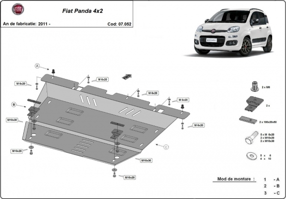 Protetor de Carter de aço Fiat Panda 4x2 (2011-2026)