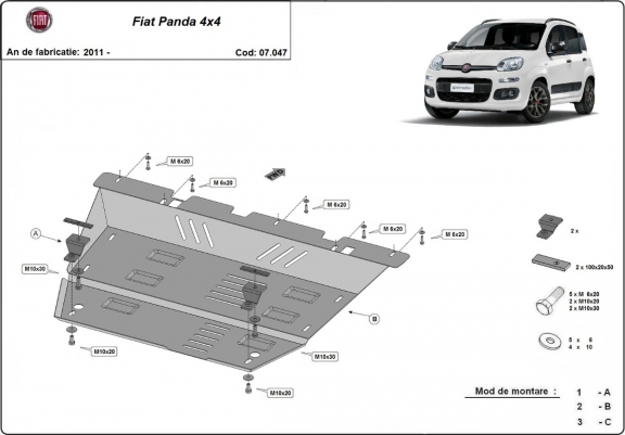 Protetor de Carter de aço Fiat Panda 4x4 (2011-2026)