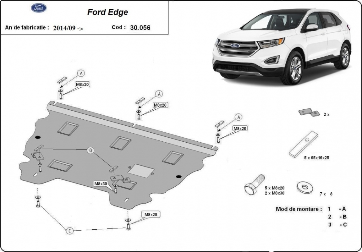 Protetores de cárter em Aço para a proteção do motor, caixa de velocidades, radiador The skid plate is new and fits perfectly for all versions of Ford Edge manufactured between 2014 and 2021. Os nossos protetores de cárter são feitos com chapas de aço com 2 mm de espessura com pintura eletrostática. Entregue com todos os acessórios necessários (parafusos, porcas, grampos). Todas os protetores de cárter possuem um revestimento em pó para impedir a corrosão. |
