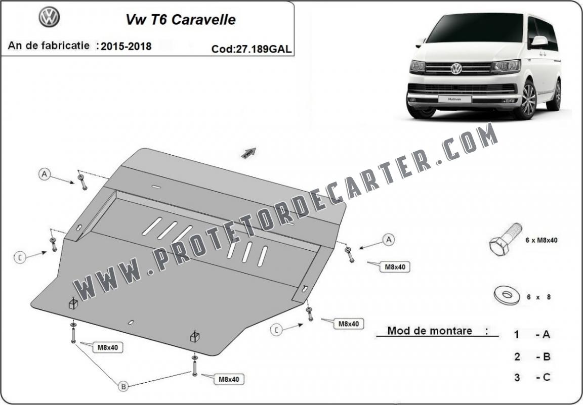 Protetor de Carter de aço galvanizado Volkswagen Transporter T6 Caravelle (2015-2018)