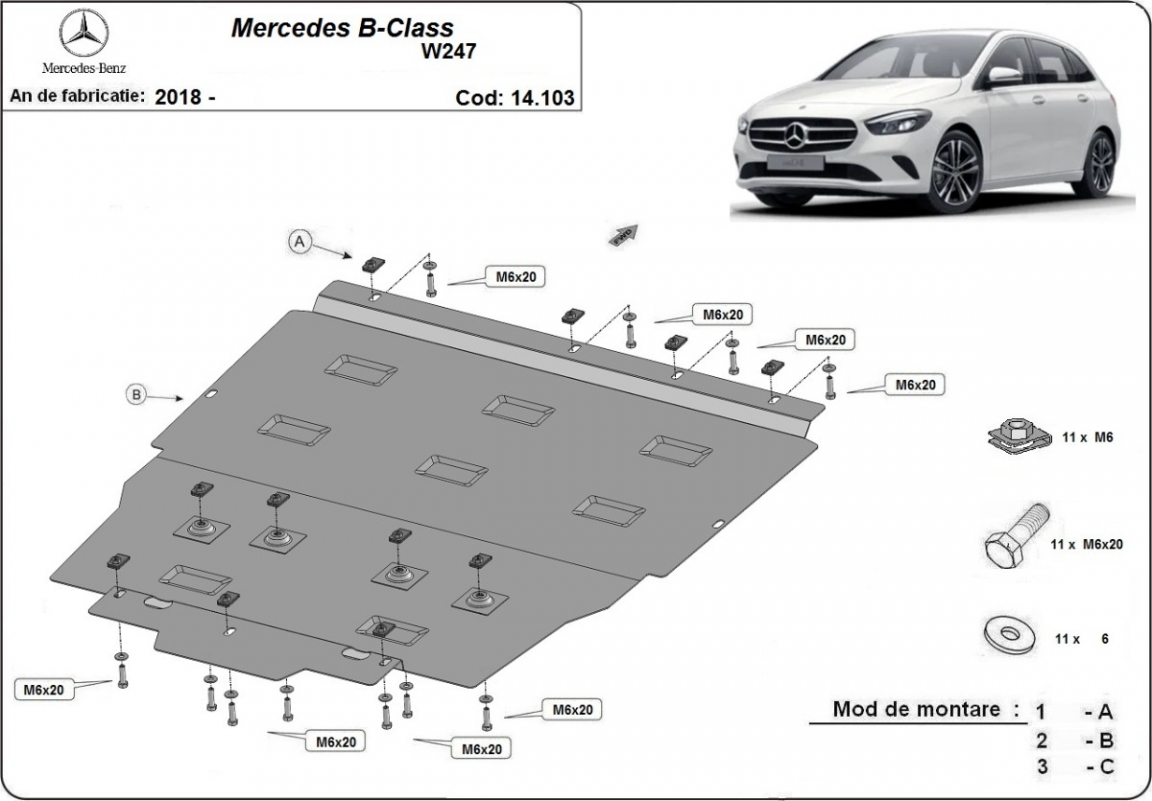 Protetor de Carter de aço Mercedes B-Class W247 (2019-2026)