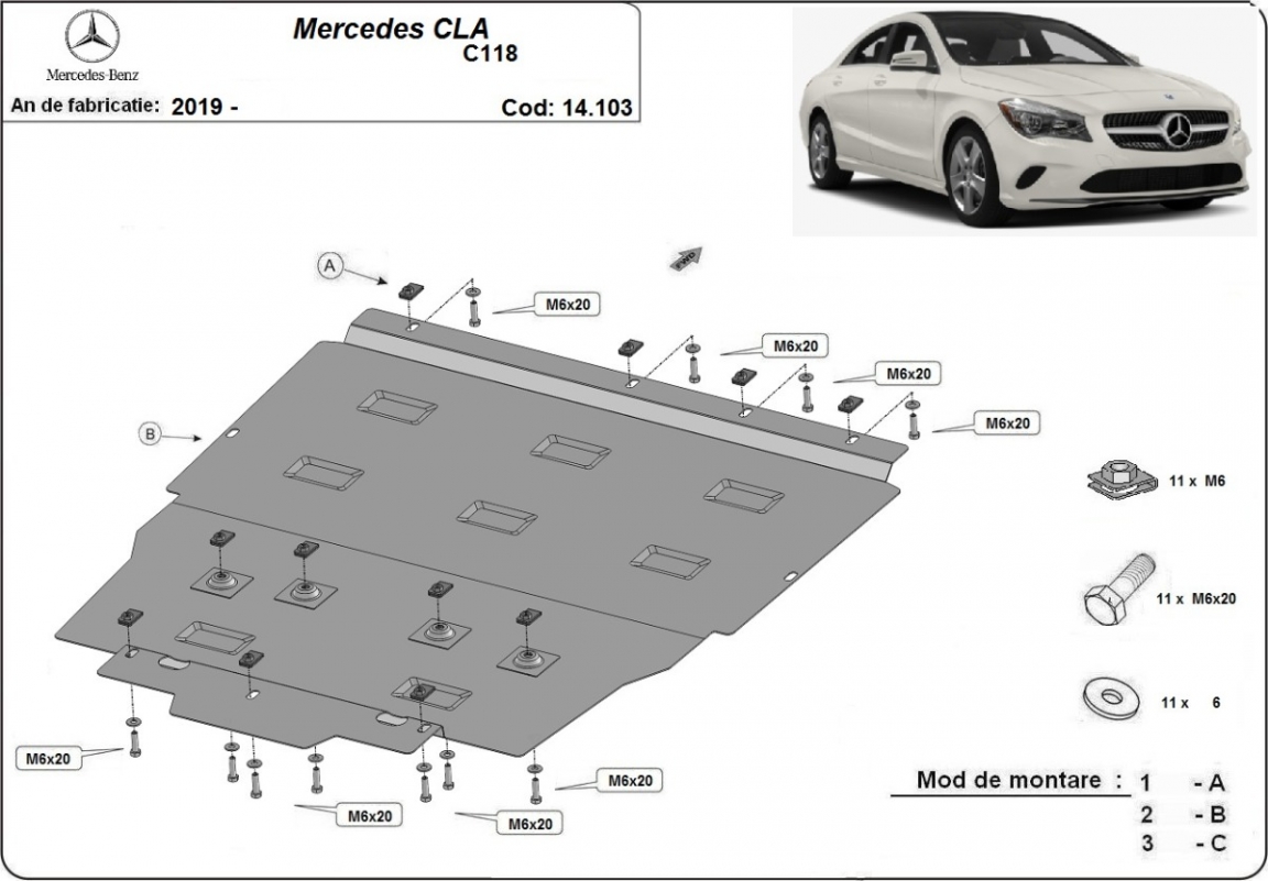 Protetor de Carter de aço Mercedes CLA C118 (2019-2026)