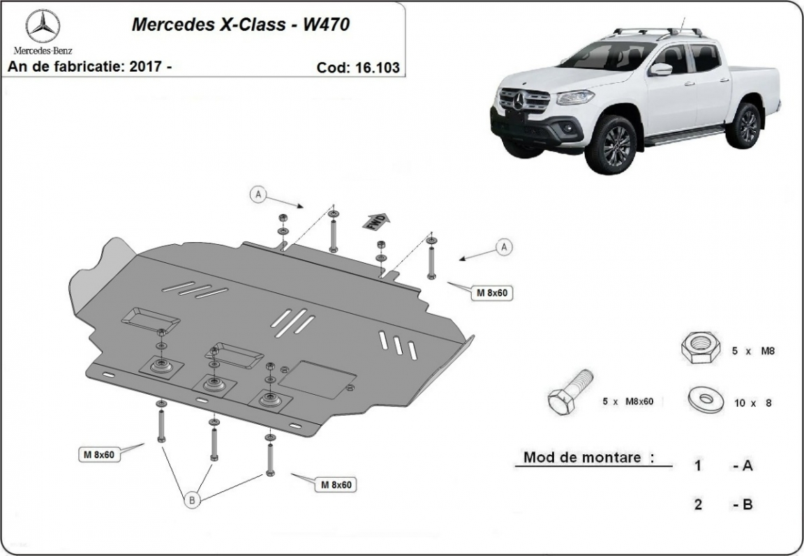 Protetor de Carter de aço Mercedes X-Class W470 (2017-2020)