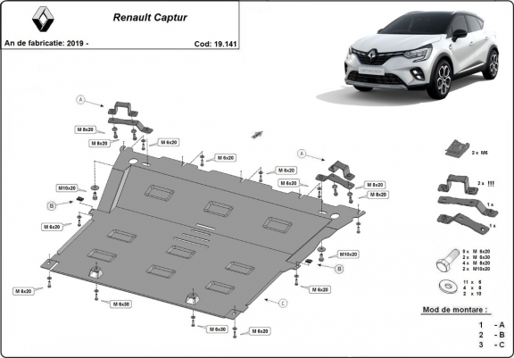 Protetor de Carter de aço Renault Captur (2019-2026)